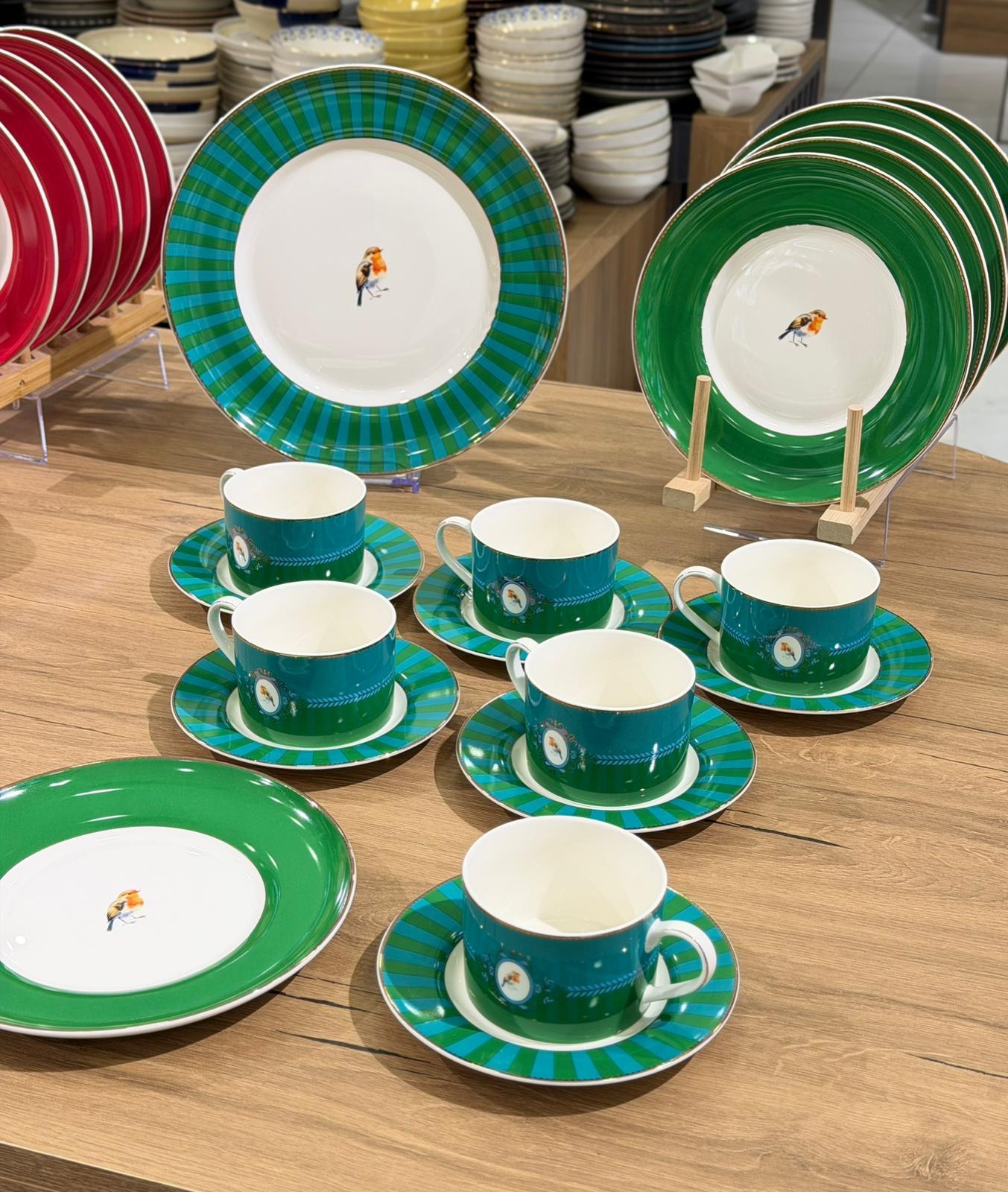 19 Parça Prilla Green Porselen Pasta Seti
