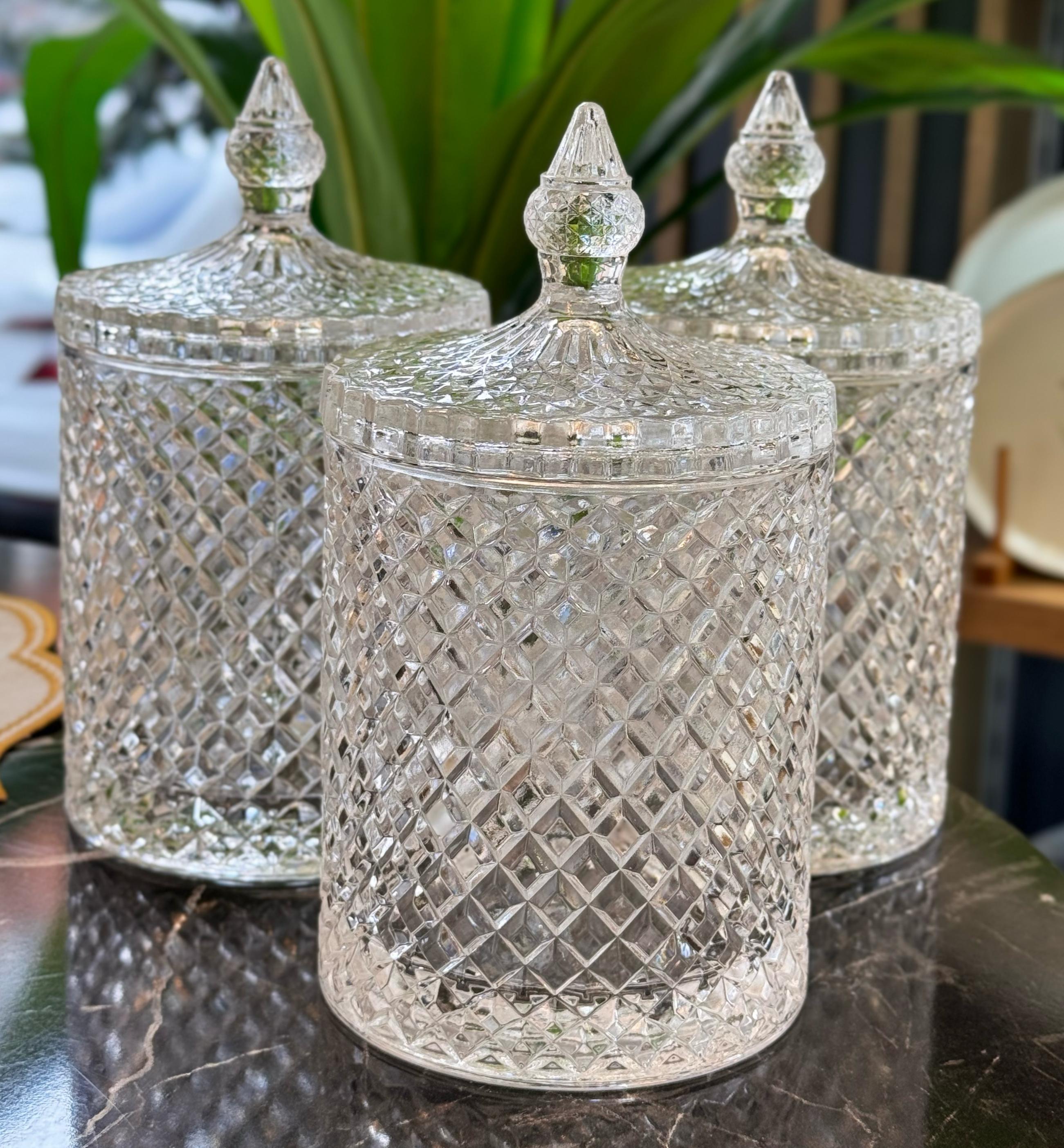 3'lü Diamond Lüks Kesme Cam Kavanoz Seti