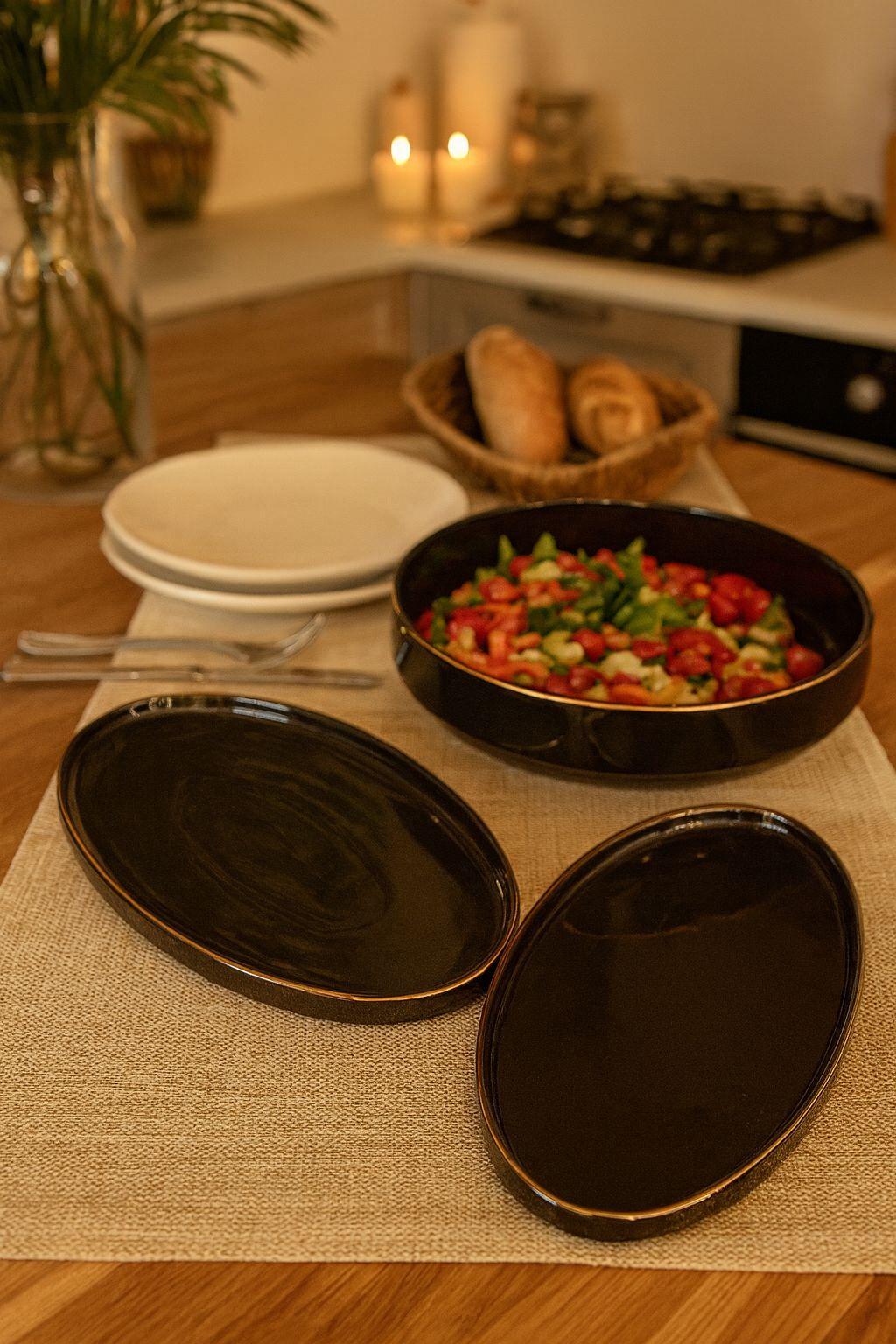 Porselen gold yaldızlı 3 parça yemek takımlarınızı tamamlayacak salata kase seti makinede yıkanabilir.