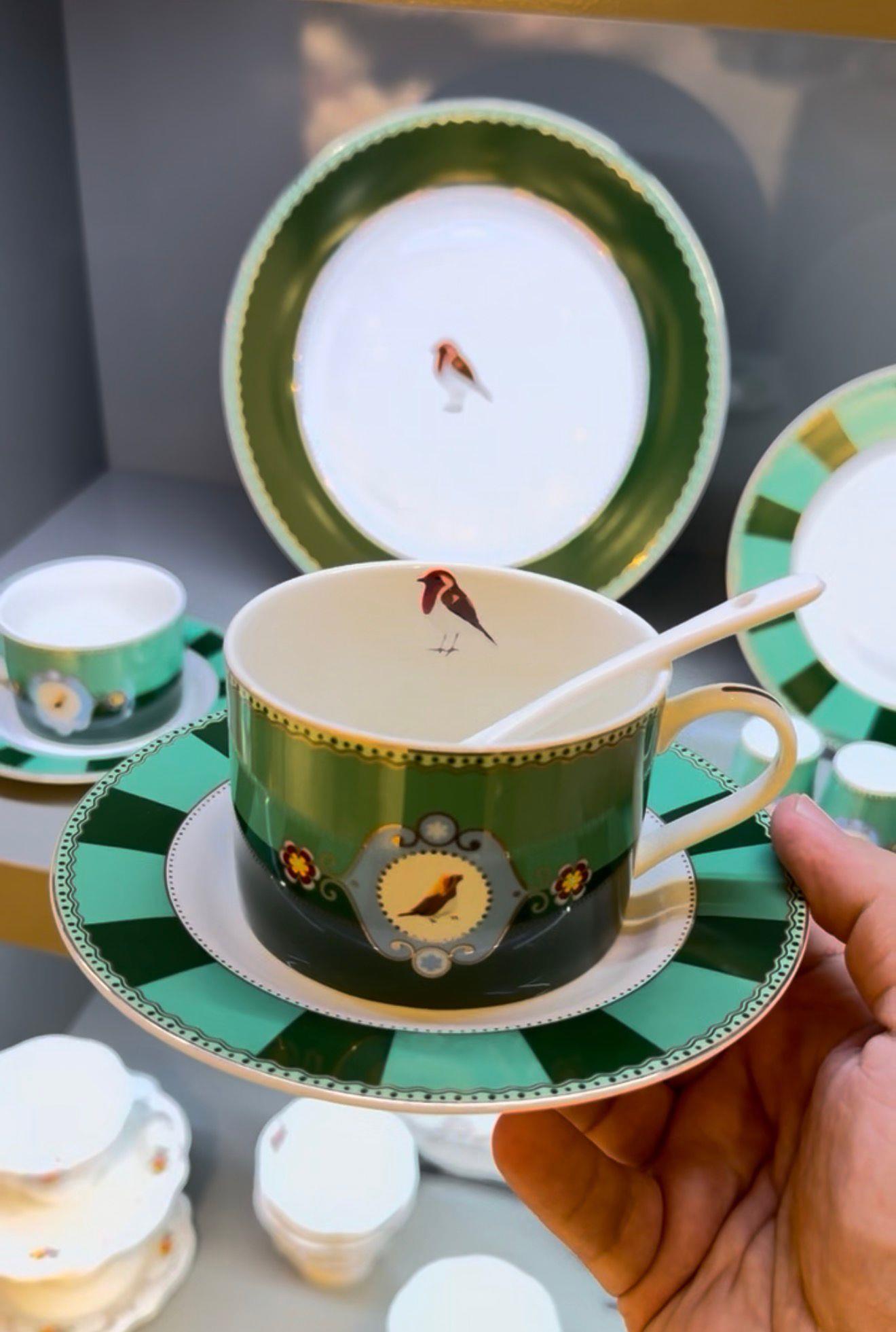 48 Parça Porselen Bird Green Qush Kahvaltı Seti