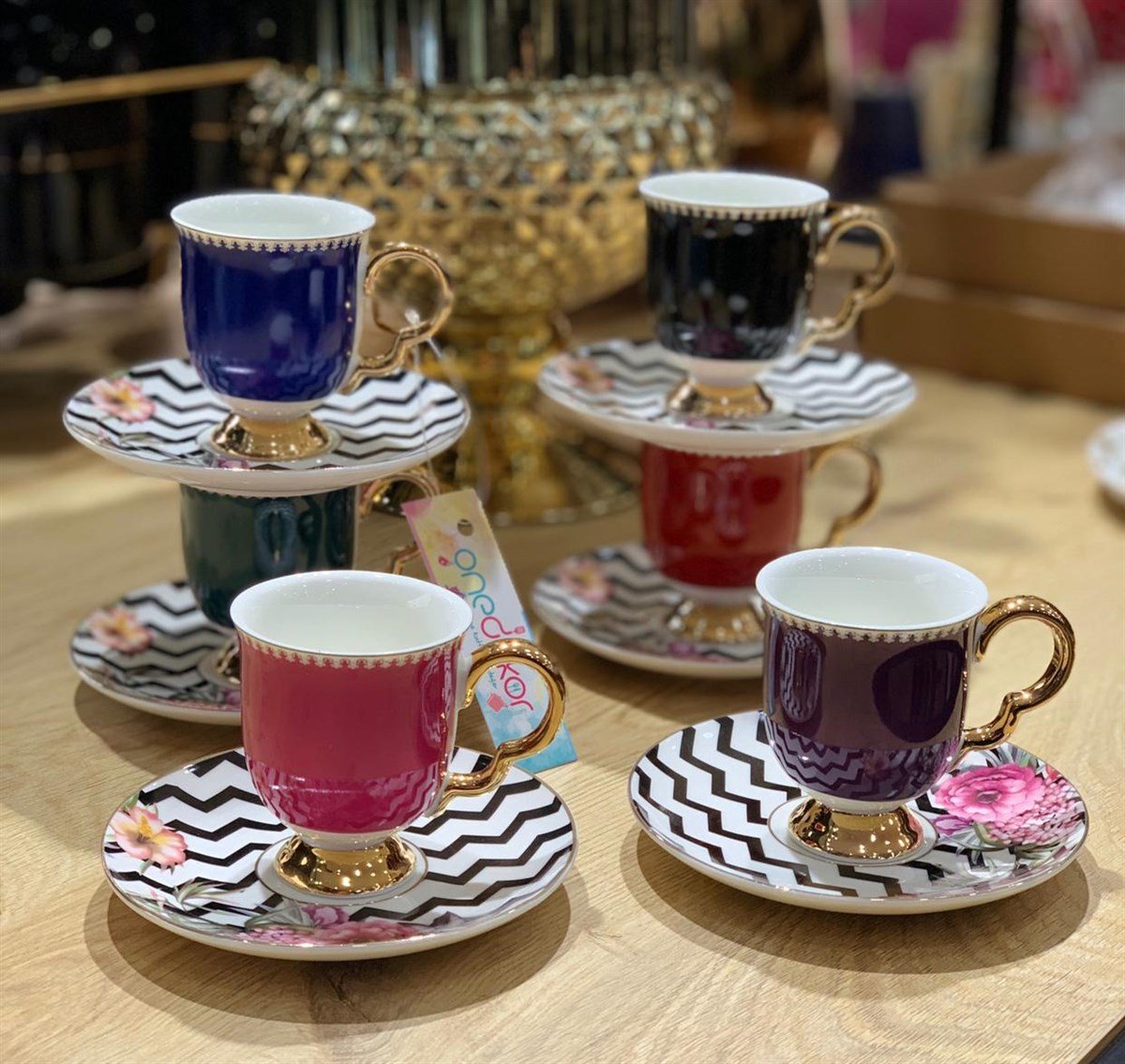 6'lı Hawaii Desen Renkli Kahve Fincanı