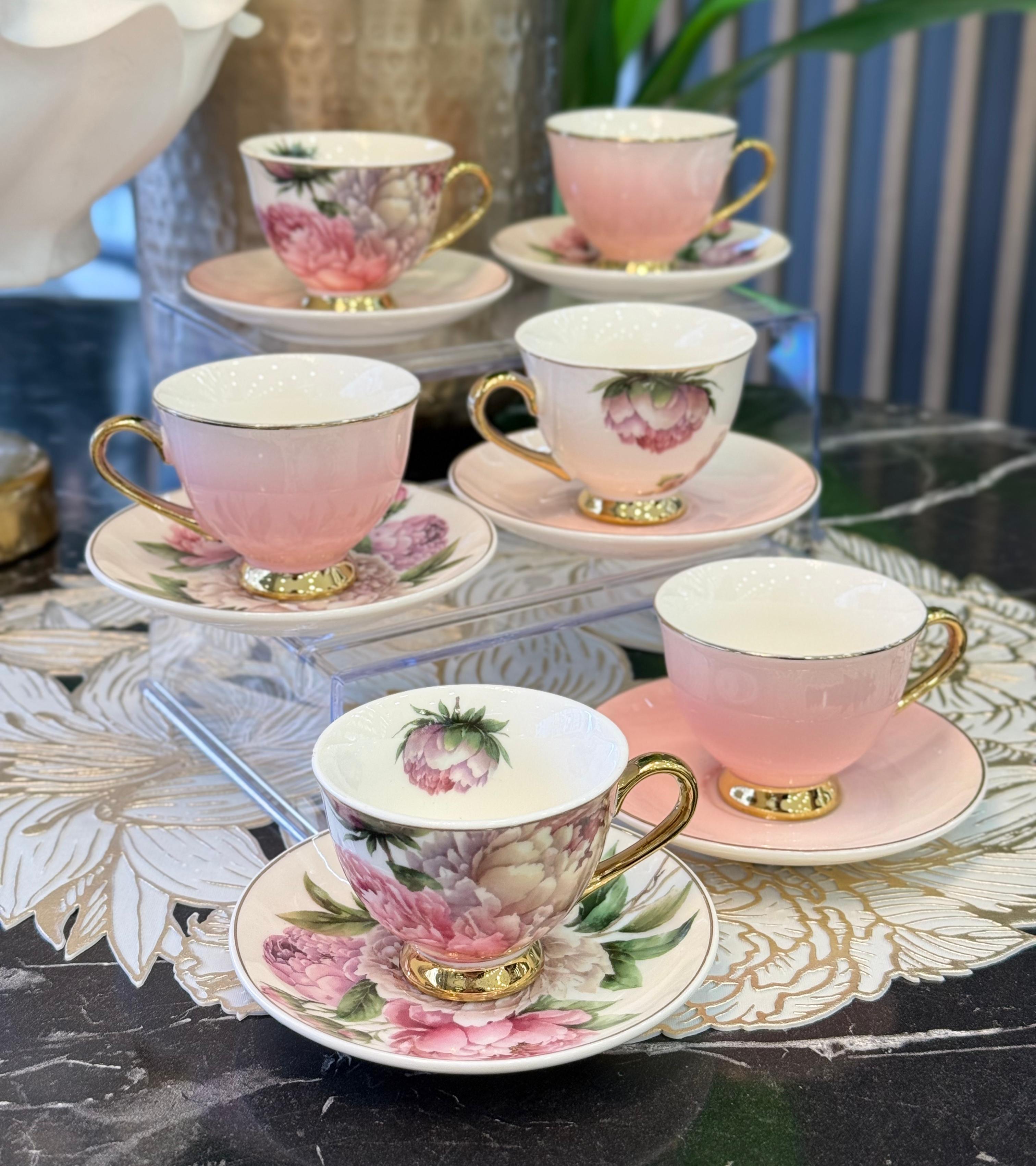 6'lı Porselen Pink Rose Kahve Fincanı
