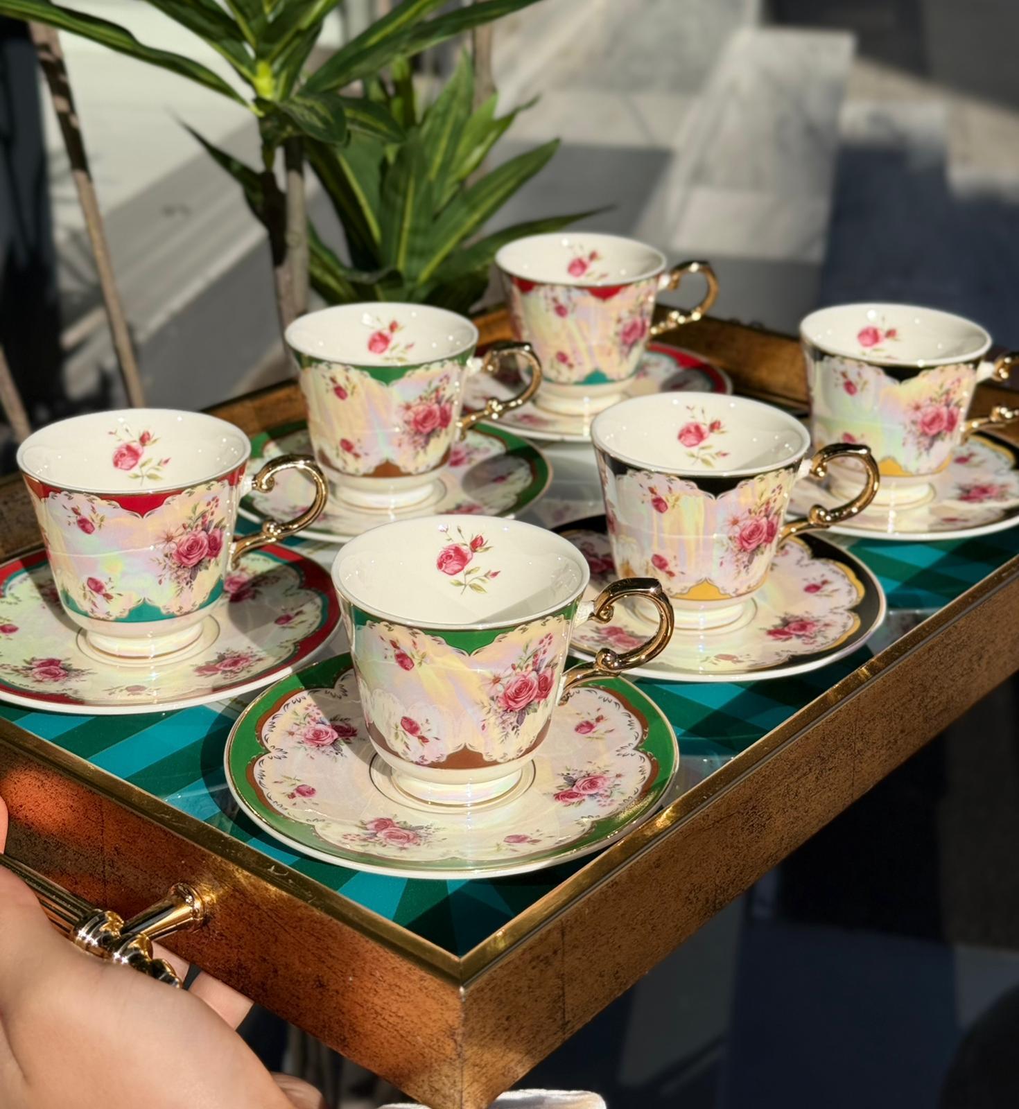 1. Kalite Porselen Fincan ve tabağı lüks fincan takımı toplamda 12 parça