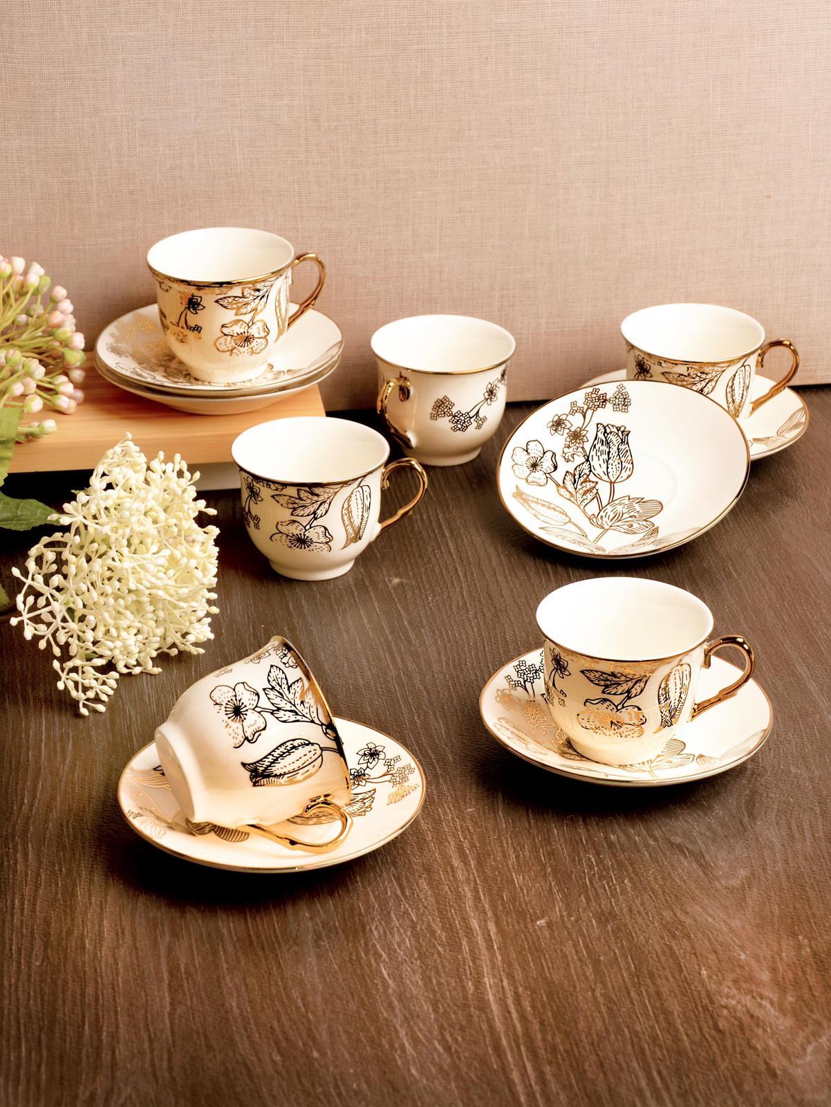 1. Kalite Porselen Fincan ve tabağı lüks fincan takımı toplamda 12 parça