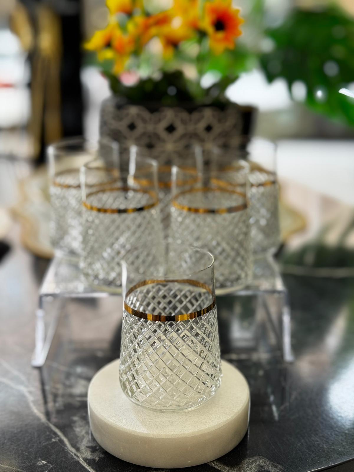 6'lı 140cc mat altın bordürlü kahve yanı bardağı seti, elde yıkama yapılır.
