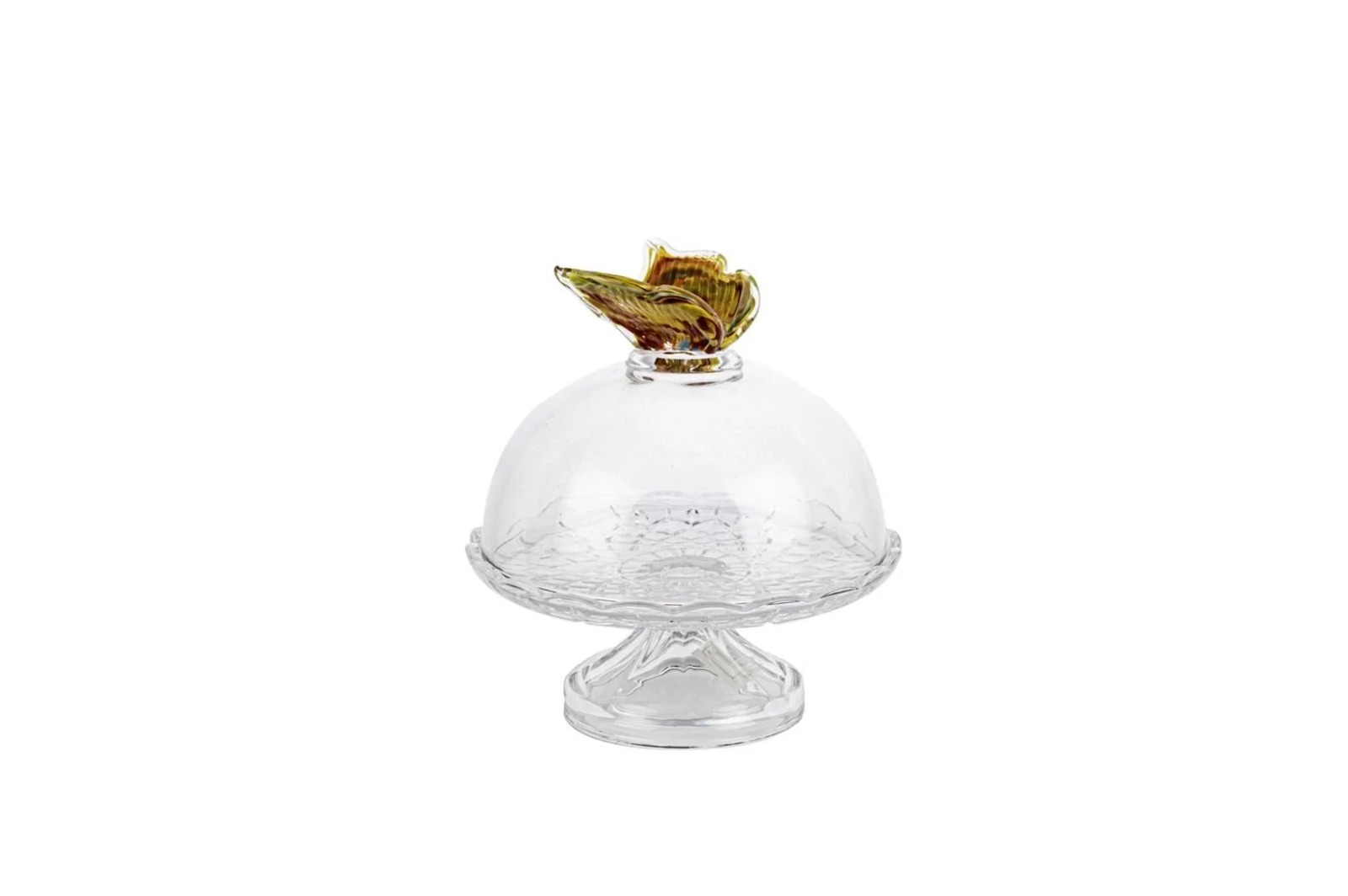 Renkli Kelebekli Kapaklı Cam Kek Standı 18x21cm